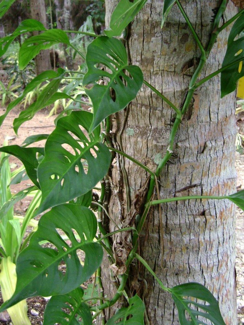 Mô tả: Dây leo rất to. Lá ở thân non có phiến nguyên, ở thân trưởng thành có phiến dài đến 60cm, sẻ sâu, không trổ; bẹ có nhiều sợi xẻ ra, xanh. Buồng trên cuống ngắn, dài 10-12cm, rộng 2-3cm ở ngọn, có mo xanh ở mặt ngoài, vàng ở mặt trong, hao lưỡng tính, trần; nhị 4, bầu 1 ô, 1-3 noãn. Quả mọng nhỏ; hạt có vỏ cứng, dài 5mm.