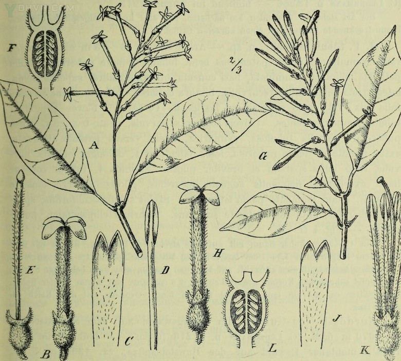 Mô tả: Cây gỗ cao 7-12m. Lá bầu dục, hẹp, thót lại từ giữa về phía gốc và phía ngọn, nhọn mũi, nguyên, nhẵn và bóng ở trên, màu ôliu và hơi có lông mềm ở dưới, dài 7,5-15cm, rộng 30-40mm. Hoa thành chùm dạng bông ở ngọn, dài hơn lá, có lớp lông thưa và ngắn. Quả hình trứng, có đỉnh nhọn và bao bởi các răng đài, dài 10mm, rộng 6mm, nhẵn hay gần nhẵn, màu tím hay đỏ, rồi đen.
