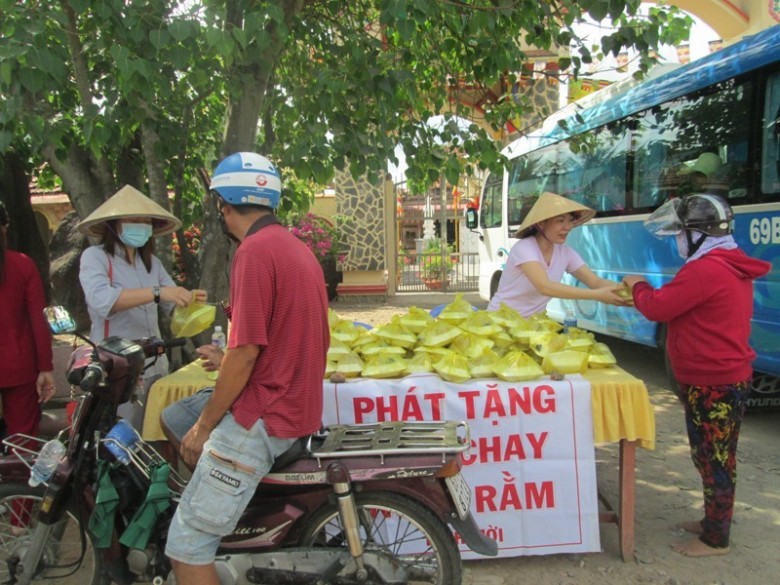 Ngoài ra, ngày mùng một Tết Nguyên đán có phát tặng xôi và bánh bao chay. Cơm và thực phẩm chế biến được nhà bếp đưa vào hộp, sau đó vận chuyển ra cổng tam quan và phát trước cổng. Chùa nằm cập quốc lộ 1A nên rất thuận lợi cho người dân đến nhận cơm.