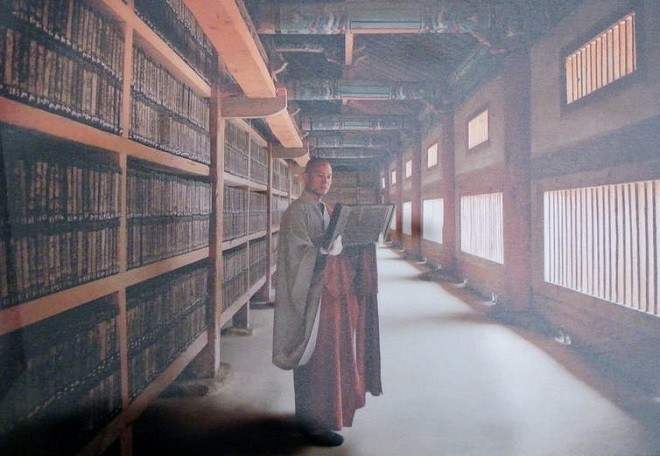 Vị Tăng sĩ Phật giáo đang xem mộc bản Cao Ly Đại Tạng kinh, Bảo tàng Mỹ thuật, Boston. Ảnh: Lorianne DiSabato