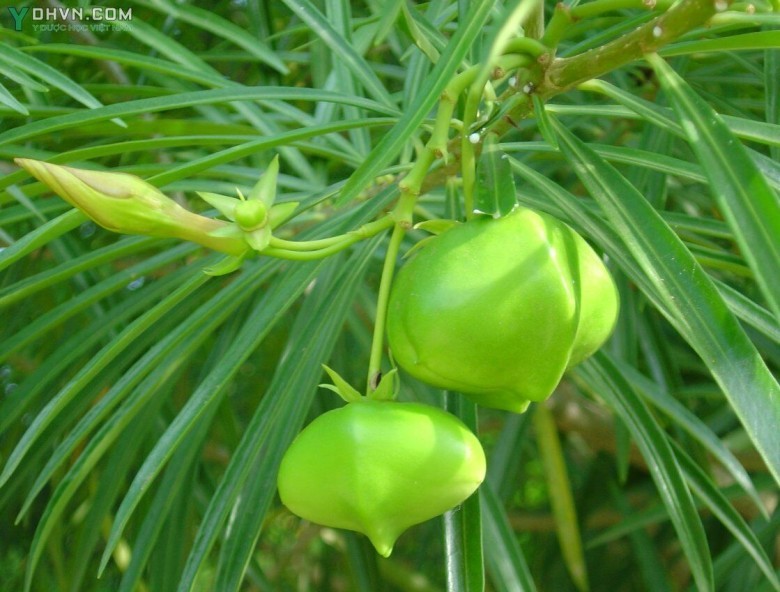 Tính vị, tác dụng: Lá có vị cay, tính ôn, có độc, có tác dụng giải độc tiêu thũng. Hạt có vị cay và đắng, rất độc; có tác dụng trợ tim, lợi tiểu, tiêu sưng. Vỏ đắng; có tác dụng xổ nhẹ, hạ nhiệt. Người ta biết là thevetin có hoạt tính chủ yếu, nhất là đối với tim. Thevetoxin cũng có tác dụng như thevetin nhưng không độc.