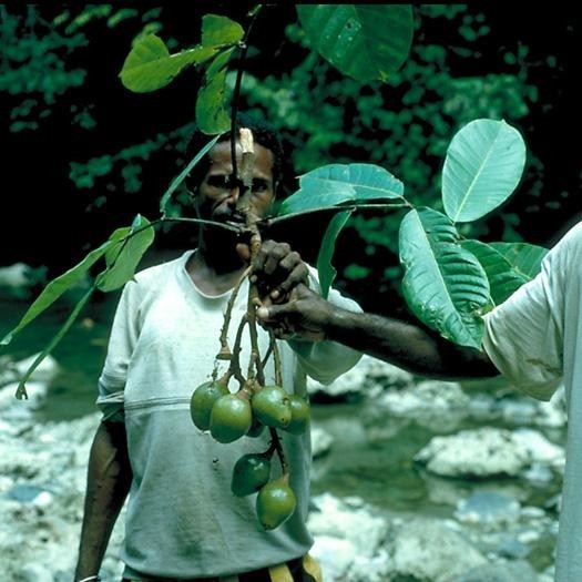 Mô tả: Cây gỗ nhỏ, cao 4-5m. Lá kép gồm 3-7 lá chét xoan bầu dục, dài 6,5-13cm, rộng 3-5cm, đầu nhọn dài, gốc nhọn, gân phụ 9-10 cặp, có lông, mặt dưới nâu đậm. Cụm hoa đơn tính, cao 5-7cm, hoa cái cao 5,5mm; hoa đực cao 7-10mm. Quả dài 3,5cm, rộng 1,3cm; nhân hình thoi, nhọn hai đầu, có 3 cạnh, hạt 1-2.