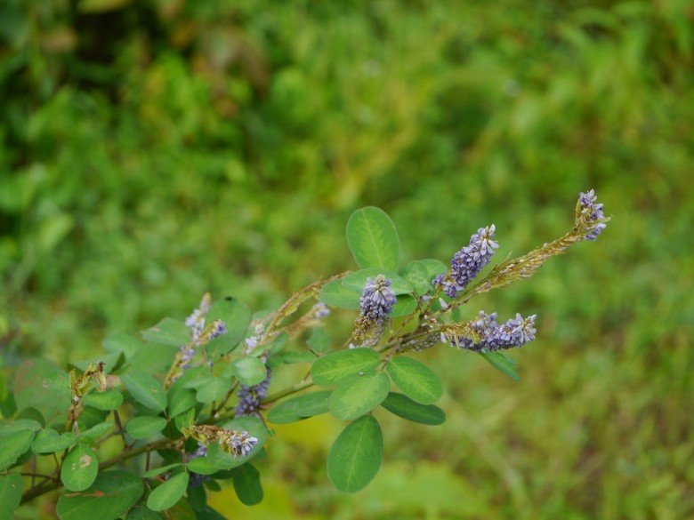 Mô tả: Cây thảo có thân bò hoặc đứng cao 1-3m phân nhánh nhiều , nhánh có lông. Lá chét 3, hình bầu dục, dài 2,5-6cm, rộng 1,3-2,5cm, đầu tù hay tròn, mặt dưới nâu nhạt hay xám trắng; lá kèm hình tam giác nhọn, cao 1cm. Chùm hoa ở ngọn, dày, có lông hung, mọc đứng hay không. Hoa màu tím, đài hoa có thuỳ dài bằng ống. Quả đứng có lông, dài 12-25cm; các quả ở phía dưới có 1-2 đốt mà thôi.