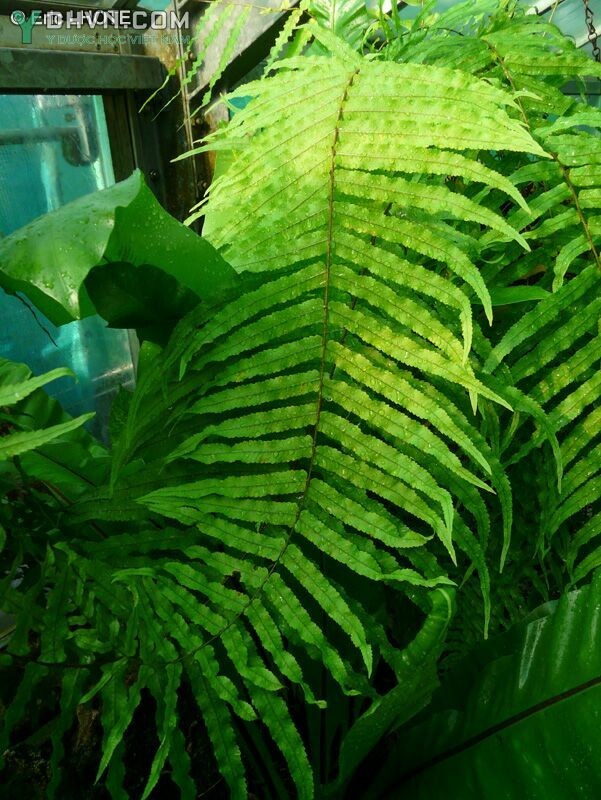 Mô tả: Cây có thân rễ bò rất dài, màu mốc trắng, vẩy nhỏ màu hung quăn. Lá thưa, cuống vàng dài 20-30cm, phiến dài 20-60cm. Lá chét bậc nhất mọc ngang, cách nhau 2cm, dài 10-15cm, rộng 16-20mm, mỏng gốc hơi có tai, mép nguyên hay có răng, đầu thon dài, có đốt ở cuống ngắn.