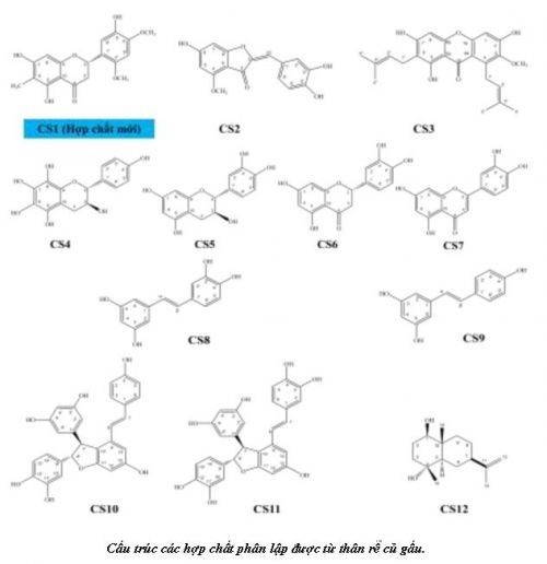 Từ củ gấu biển (Cyperus stoloniferus Retz.) đã phân lập và xác định được cấu trúc hóa học của 12 hợp chất, 7 hợp chất thuộc lớp flavonoid (CS1-CS7); 4 hợp chất thuộc lớp chất stillbenoid (CS8 – CS11); 1 hợp chất thuộc lớp chất terpenoid (CS12).