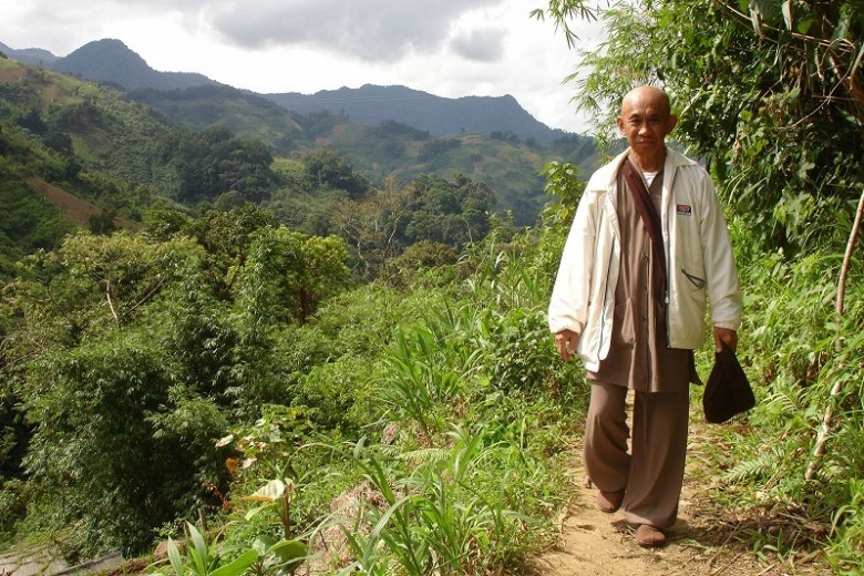 Thượng tọa Thích Huệ Đăng trên đường lên núi Ngọc Linh