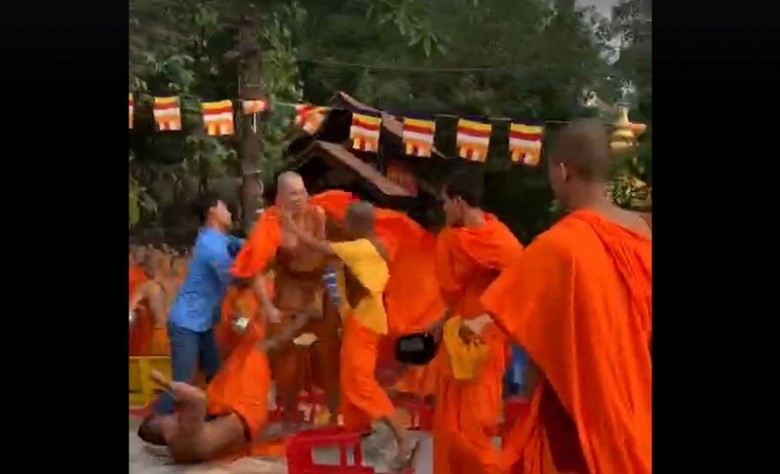 Hình ảnh các vị sư giả xô xát nhau (Ảnh cắt từ video clip)