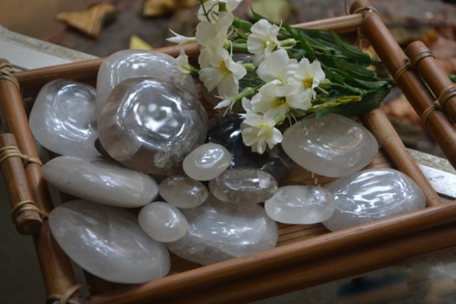 Hình ảnh những Viên đá thạch anh trắng, thạch anh ám khói đã được đánh bóng dùng để Massage trong các tiệm Spa